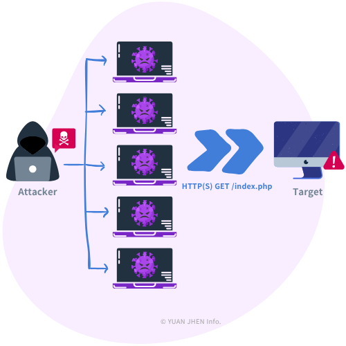 DDoS(Distributed Denial of Service)攻擊,顧名思義就是透過大量分散的裝置或伺服器,對目標系統發送過量請求,使其無法處理正常流量,進而導致服務中斷。這些被駭入的裝置組成「殭屍網路(Botnet)」,可能來自全球數十萬台電腦、IoT 裝置甚至雲端主機。